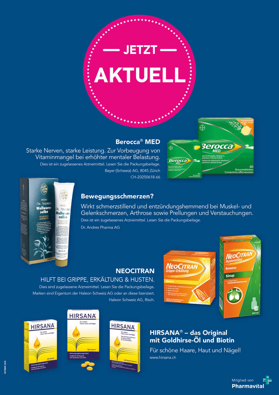 Dank unserer Ausbildung und Erfahrung können wir abschätzen, ob eine Krankheit oder Gesundheitsstörung selbst behandelt werden kann oder ob sie weiterer ärztlicher Abklärung bedarf. Im Mittelpunkt unserer Beratung steht der Mensch und nicht die Krankheit. Unser Team nimmt sich Zeit für individuelle Beratungen und versucht, Ihren Wünschen und Bedürfnissen Rechnung zu tragen. Auf unserer Internetseite erhalten Sie stets aktuelle Informationen über unser Angebot. Ausserdem können Sie in der Apotheke das monatlich erscheinende Apothekenmagazin mitnehmen, das über spannende Themen rund um die Gesundheit berichtet.